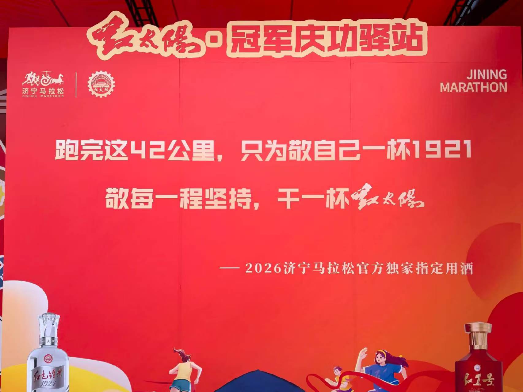 “红太阳·暖人心”,这句话对于济宁市民而言早已耳熟能详。但红太阳酒业始终认为,它绝不仅仅是一个口号,更是一种需要付诸行动的企业使命。 在本次济宁马拉松现场,红太阳酒业精心设立了“红太阳酒业特别展厅”和多个互动小游戏环节。赛道沿线,身着红太阳酒业工装的拉拉队不仅为疲惫的选手及时加油鼓劲,在起点和终点,红太阳酒业更是为每一位2026济马完赛的选手都赞助了一瓶125ml水晶版1921礼品小酒,和将近三千提祥酒六棱礼盒作为伴手礼赠予我们的“济马老友”,用“酒香四溢”的方式为跑者们加油鼓劲。